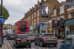A digital out of home screen located on New King’s Road which stretches throughout Fulhams…